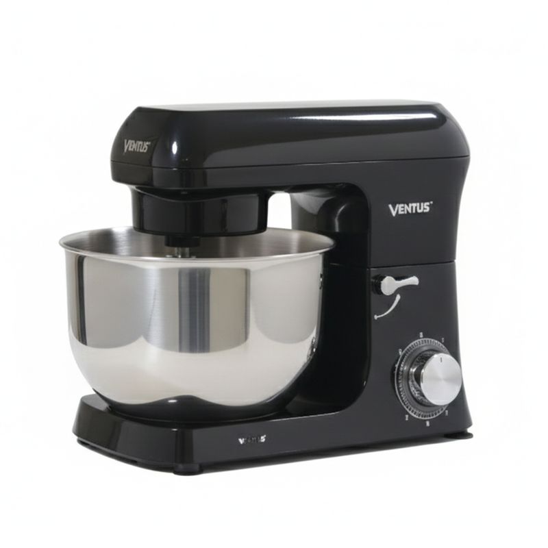 La tapa de seguridad anti-salpicaduras mantiene tu espacio limpio y seguro, y sus accesorios profesionales —gancho para amasar, paleta mezcladora y batidor de varillas— se adaptan a cada receta como una extensión de tus manos.