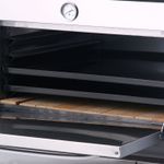 Cuenta con un frente de acero inoxidable esmerilado, seis bandejas enlozadas y un sistema de riel en zig-zag para mejor soporte. Su tirador de aluminio con disipador de calor garantiza un uso seguro y cómodo.
