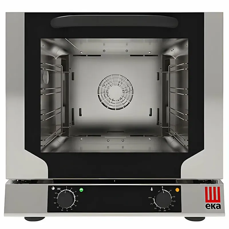 El EKF 464 N P es un horno de convección eléctrico versátil de 4 bandejas 600×400 mm, diseñado para ofrecer máxima eficiencia en espacios reducidos, con un paso de guías de 83 mm. Cuenta con dimensiones compactas de 784 × 777 × 634 mm y un peso de 51,2 kg, pero con una potencia robusta de 6,2 kW, operando entre 100 °C y 260 °C.