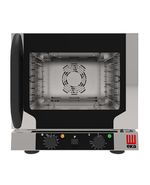 El EKF 412 N AL U es un horno de convección eléctrico compacto de 4 bandejas GN 1/2, diseñado para ofrecer máxima eficiencia incluso en espacios reducidos. Con dimensiones de 463 × 512 × 461 mm y un peso ligero de unos 21,8 kg, incorpora humidificación indirecta mediante botón y un rango de temperatura entre 100 y 260 °C para adaptarse a múltiples tipos de cocción.