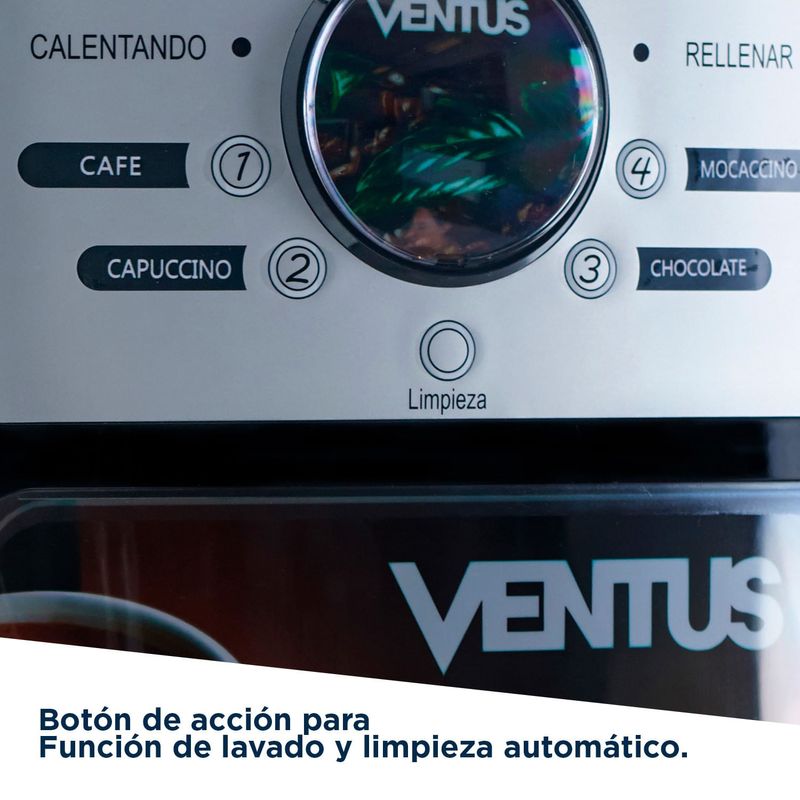 - 4 botones de selección para diferentes bebidas calientes: Café, Capuccino, Chocolate o Mocaccino.